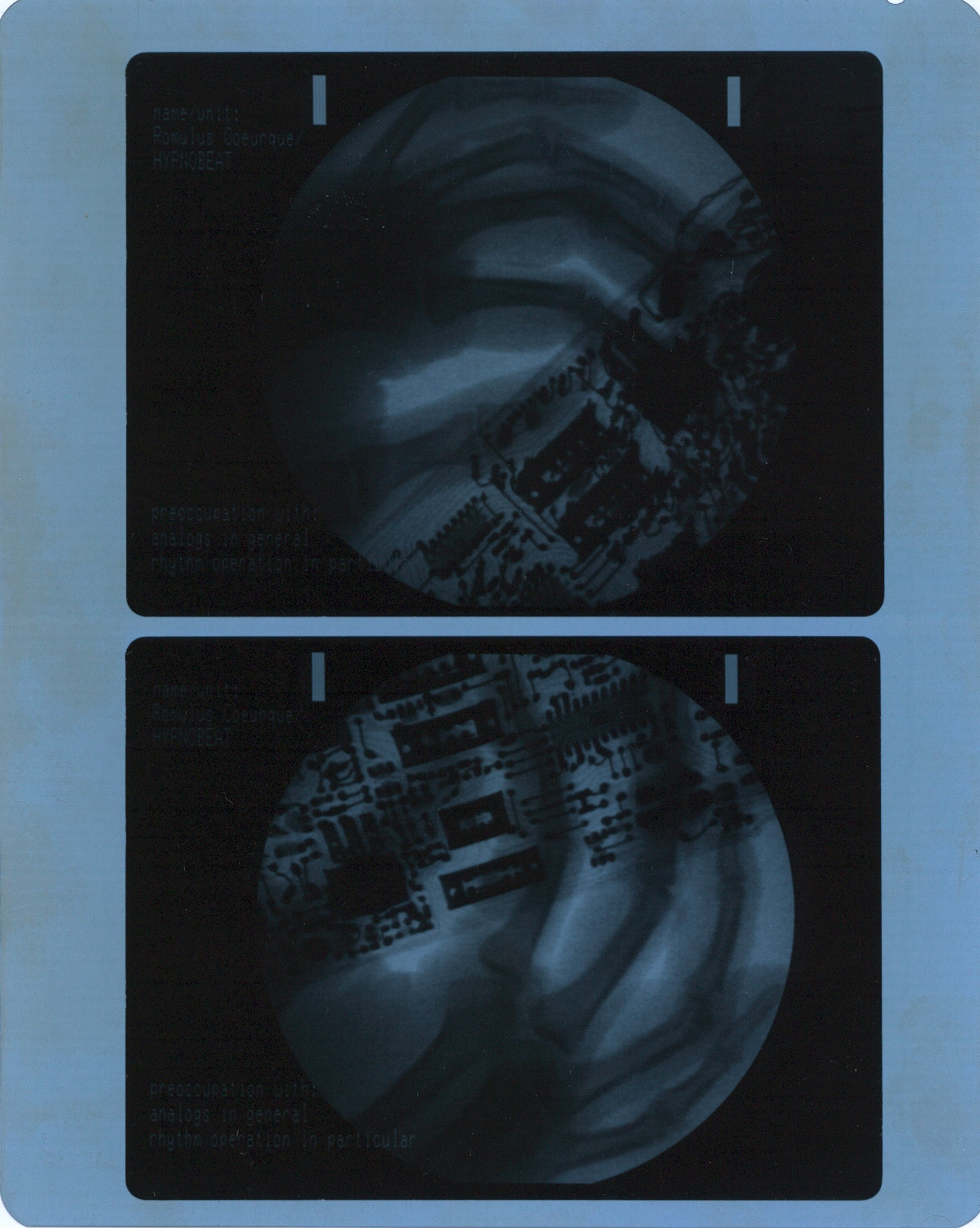 RC: rhythms, tapes, processing; synth, eqs / PF: rhythms, processing; loop, eqs, mix / PE: syncussion, time machine / PI: electronic percussion, time machine